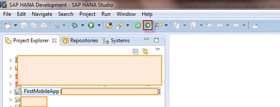 Next you need to commit and activate the service (Figure 14). To commit and activate the service first select the project name (FirstMobileApp) and then the next icon in the toolbar. This opens the screen in Figure 15 which shows the activated OData service.