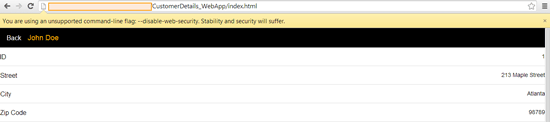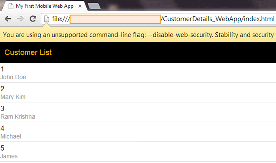 After you have opened the index.html file in Google Chrome, you should see a customer list as shown in Figure 24. This is the list of customers that were entered in the database table.