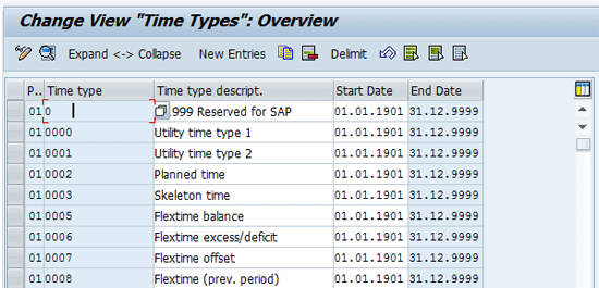 To create the time type, follow IMG menu path > Time Management > Time Evaluation > Time Evaluation Settings > Define Time Types, which results in the screen in Figure 2.