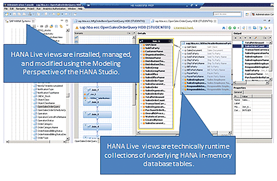 HANA Live views from a technical perspective in the HANA Modeler within HANA Studio