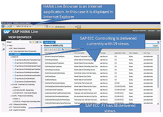 Figure 3 shows the navigation tree of the HANA Live Browser focusing on FI/CO content.
