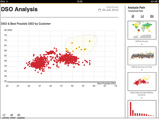 Figure 9 shows the output of the DSO application built on top of HANA Live views. With this Web-based application, FI pros can use the intuitive graphical representation and underlying advanced calculation methods to monitor DSOs more accurately and easily.