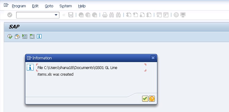 The G/L line item file download message
