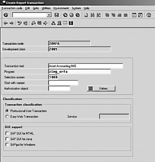 Step 3. Create the Transaction Code