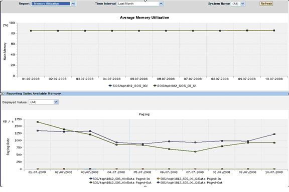 Figure 5 shows the availability of systems and instances. Figure 6 shows the memory utilization report delivered by SAP as part of IT Performance Reporting. Figure 5 shows the system availability and planned down time from CCCMS monitoring data that was extracted by CPH. This report shows correlated views between system available and downtime. Availability and downtime history data that proves predetermined service levels have been achieved.