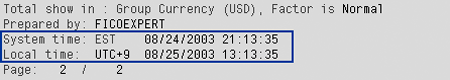4. Standard FI report header: Most standard FI reports, usually named RF****** (e.g., RFSSLD00) use a common header routine. You can apply SAP notes to show the local time zone together with the time zone code in the header so that the exact time is clear on the reports. Check SAP note 598133 and SAP note 452485. (See Figures 8 and 9.)