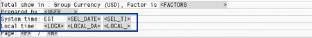 Most companies have ABAP standards so that all reports have headers with runtime, report name, user name, etc. Check if your standards take account of time zone settings. Ideally, both local and system times with time zone codes should be printed in the report header.