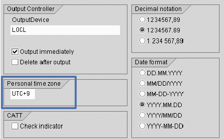 Set personal time zone in user defaults via transaction SU3 for a user in Tokyo