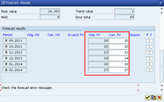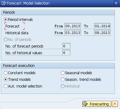 In Figure 10, you can select if you want the system to start the forecast from the current month or from the next month. In my example, I chose 09.2013 (September, 2013) as the current month and clicked the continue icon. This time the system brings another pop-up, as shown in Figure 11.