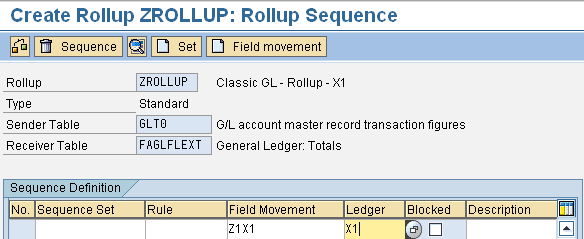 A field movement is necessary for every new ledger setup, so you need to set up and assign it to the rollup sequence (Figure 7). You can access this customizing step by clicking the Rollup sequence button in the screen in Figure 5.