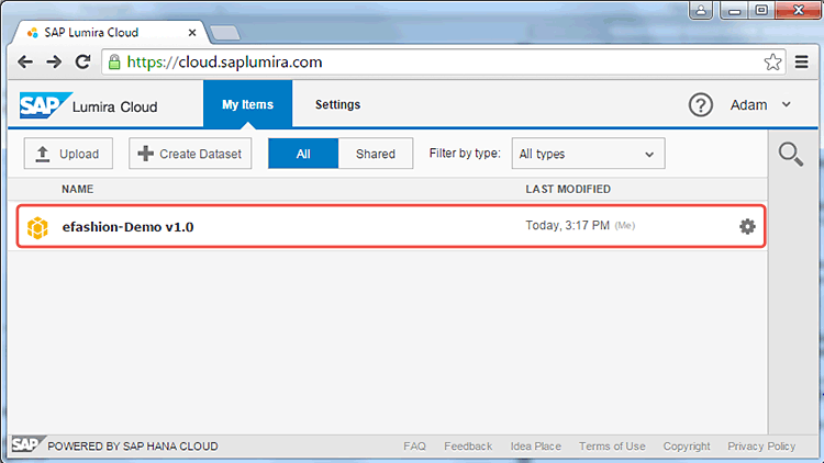 Once the dataset acquisition is completed, the dataset appears on the My Items page as shown in Figure 12.
