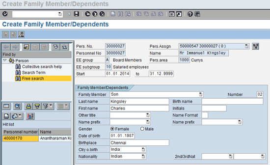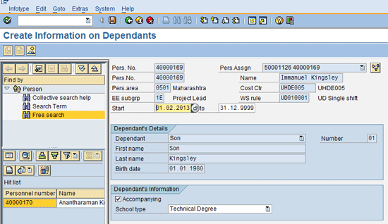 . (You can upload the dependents’ details through the standard Legacy System Migration Workbench [LSMW] or the Batch Data Communication [BDC] tool for all employees.)