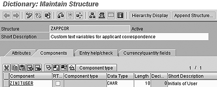 However, most companies working with recruitment in R/3 need special fields that are not available in standard SAP. The system allows you to create your own text variables. You need only basic ABAP skills and an understanding of data structures in HR. The technique is similar for MS Word and for SAPscript. My example focuses on MS Word and mentions the major differences when you use SAPscript.