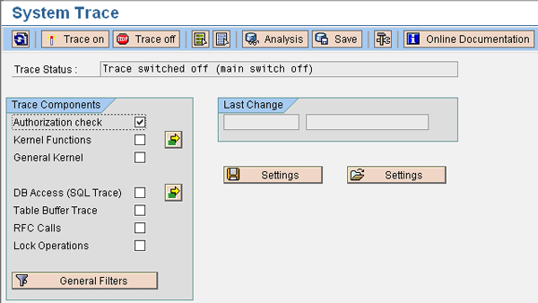 You can activate authorization traces with transaction ST01. Make sure the Authorization check option is active, and click on the General Filters button (Figure 1).