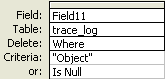 Change the normal query to a delete query by following Query > Delete Query from the user menu. Update the Criteria field in column Field11 to delete the record if it matches the text “Object” or if it is null. Just type in the words Object and Is Null and press Enter (Figure 15).