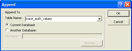 The system then warns you that not all rows can be appended because they violate the primary key constraints you put on the trace_auth_values table. This warning is actually a good sign because the original trace log might have thousands of duplicates. Click on the Yes button in the warning screen.