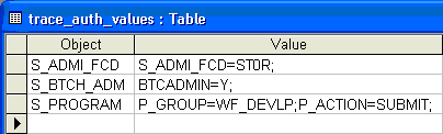 - Run query 2-APPEND_trace_auth_values to append the unique authorization objects and their values