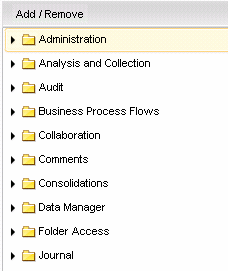 - Security: Security is tightly integrated with SAP NetWeaver BW because users must exist in SU01 (user maintenance) first, which makes it easier to maintain user IDs. Matrix security is now supported, too. This allows access to one account for all profit centers, and all accounts for just one profit center. Task profiles automatically generate roles in SAP NetWeaver BW. As shown in Figure 4, you can now manage task profiles using an intuitive interface, and you can group task profiles in folders (no more administrative check boxes).