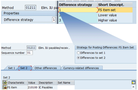 The difference strategy setting shown in Figure 4 is to post intercompany elimination differences into an entity that holds the balances of accounts payable. It is the part of the standard configuration that users can choose out of three available menu choices in EC-CS, and SEM-BCS. The previous SAP consolidation systems have more choices for calculating intercompany difference than what the current BPC provides users with.
