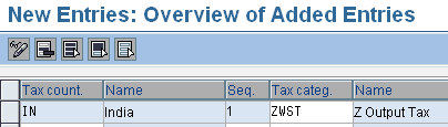 This confirms successful tax configuration required for SAP CRM on SAP ECC side.