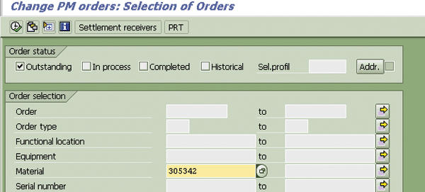 Change PM orders: Selection of Orders screen (transaction IW38)