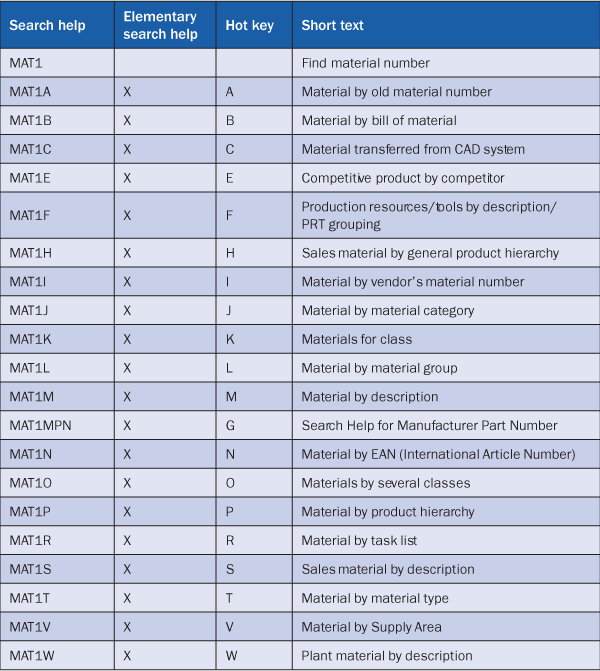 - Elementary search help: Implements a search path for determining possible entries. It describes an input help process in which you must choose multiple search paths.