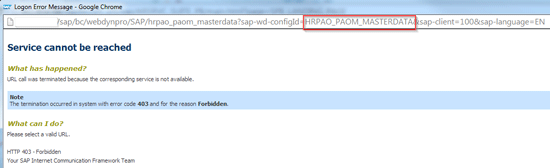When a service is not active, an error message appears (Figure 3), notifying you that that the corresponding service is not available. By analyzing the URL you can find out which service you need to activate. For example, we tried selecting the Create Organizational Unit option from the Actions lane (Figure 4). This action is supposed to open a new window with the desired action. However, we forgot to first activate this precise action, so an error message appeared (Figure 3).