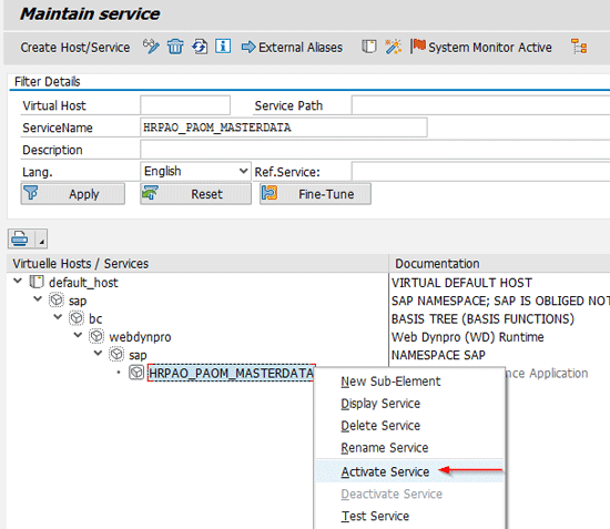 In addition to SAP Notes, it is important to activate all the SAP Gateway services that are a part of HR Renewal 1.0. They can be found in the Administration Guide and they can then be activated via transaction code IWFND/MAINT_SERVICE (Figure 1).