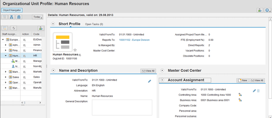 The HR professional role has been a part of HR Renewal 1.0 since its initial release. It offers functionality such as searching for employees, positions, and organizational units, and allows the user to perform actions on these objects.