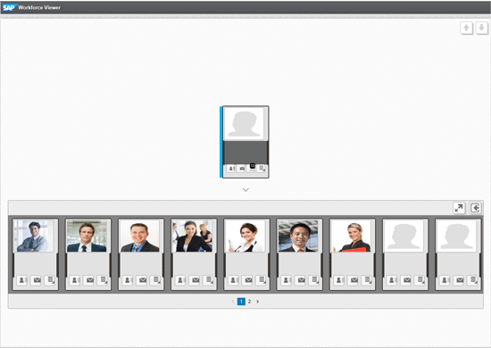 Additionally, SAP has added an enhanced search functionality that allows users to quickly get to their desired objects. The search field can be found in the upper right corner of the workforce viewer landing page. When users search for someone, the workforce viewer shows that search result on the screen, allowing the user to select the object and perform the desired actions.