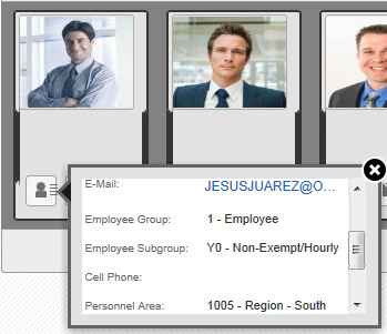 The workforce viewer offers drill-down functionality to users so they can browse through the organizational tree until they get to the required objects. The viewer contains a quick view of each object to provide the user with more detailed information about a desired object. For instance, a manager wants to know an employee’s email address. With the quick-view option, this can be done easily by clicking the desired line, as shown in Figure 15.