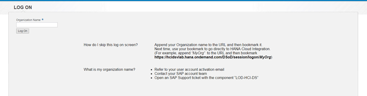 To use the SAP Data Services on Demand services you first need to have an organization created for your use. Without an organization name assigned, you are not able to log on to the SAP Data Services on Demand services. To create an organization, you need to request one from the SAP HANA Cloud Integration operations team. Once the organization is created, an administrator is created for that organization who will do the administration jobs, such as user creation and monitoring.