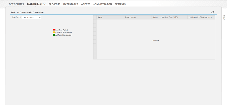 Next is the PROJECTS tab (shown in Figure 14). This is one of the most important areas in the tool. All the projects and the jobs are created in this tab. Also, you promote the jobs from development to production here.