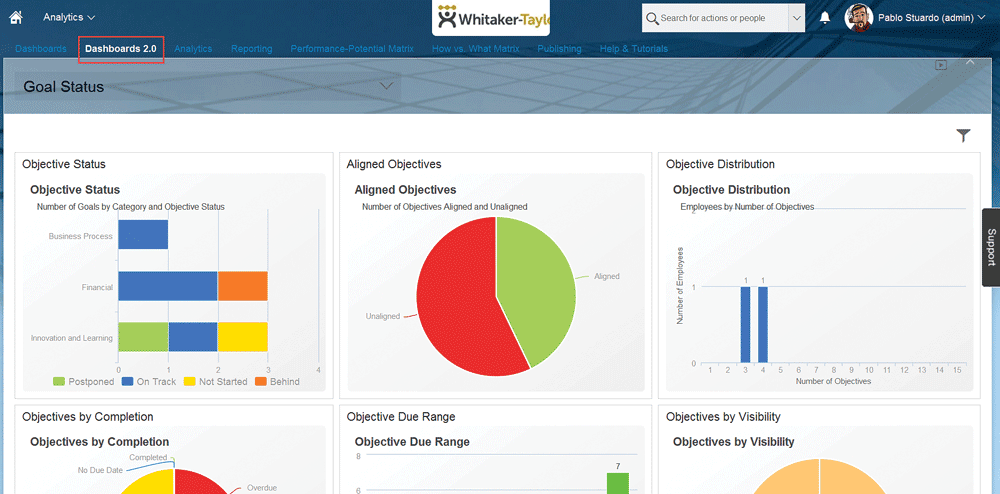 Dashboards 2.0 Reports functionality is evolving very quickly. This means that with almost every quarterly release, the user interface (UI) is improved, the availability of standard tiles options increases, and the data that can be reported by Dashboards 2.0 Reports expands. The most popular and widely used Dashboards 2.0 Reports functionalities are related to performance management and objective management.