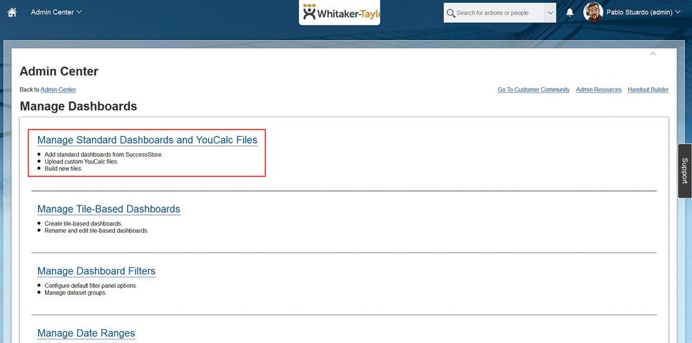 With Dashboards 2.0 Reports two types of dashboards are available: standard tile-based dashboards and custom tile-based dashboards.