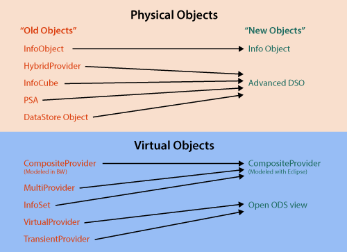 Figure 1 shows the newest list of InfoProviders for companies running SAP BW on SAP HANA. It also shows the old InfoProviders used by BW when not running on the SAP HANA database.