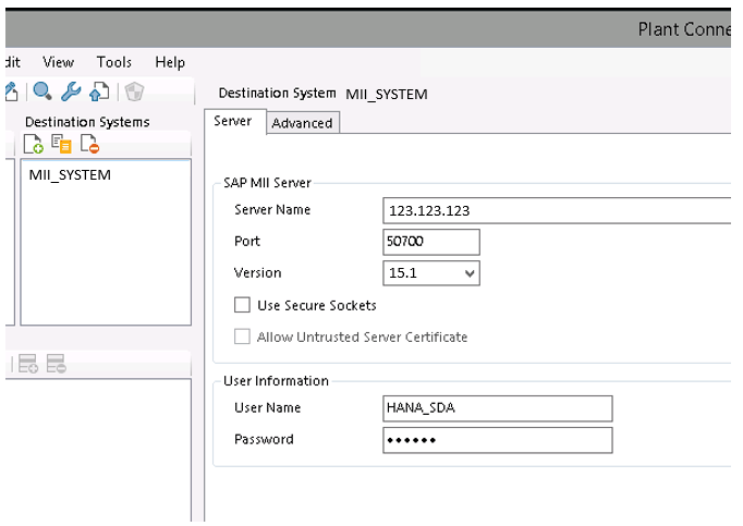 Configuring an SAP MII destination system in the SAP Plant Connectivity Management Console