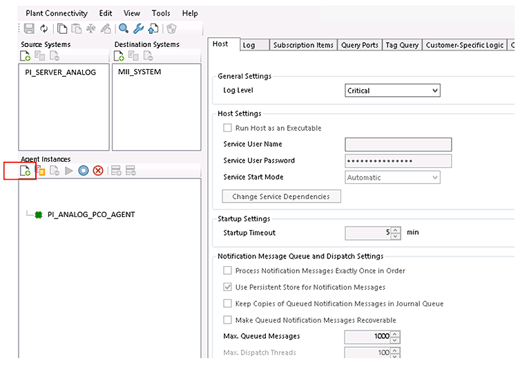 This is also configured in the SAP Plant Connectivity Management Console. First, click the add agent instances icon under the Agent Instances menu in the SAP Plant Connectivity Management Console (
