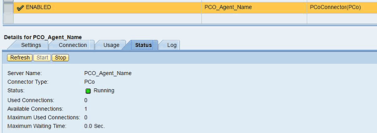 You can confirm the successful connectivity to the SAP Plant Connectivity Agent Instance by clicking the Status tab of the Data Server configuration (