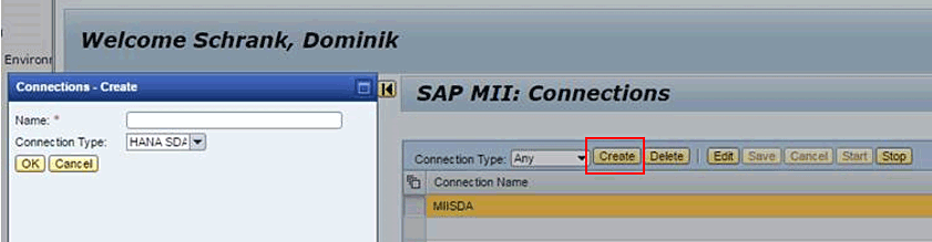 - Create an SAP MII connection to SAP HANA