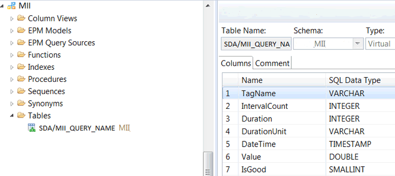 After creating the SAP MII query with the mode TagAggregateQuery, complete the step to import this new SAP MII query into SAP HANA as a virtual table. The configuration steps are the same as for the previous virtual table described in this article.