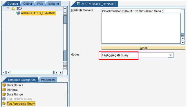 To review the support types of aggregates, select Tag Aggregate Query from the Template Categories menu. This opens the screen on the right of