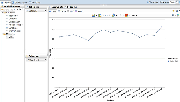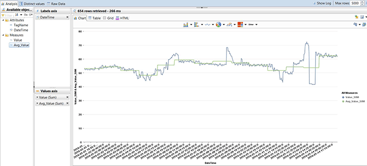 Figure 28 shows the visualization of time-series data of an OSIsoft PI tag in SAP HANA studio.
