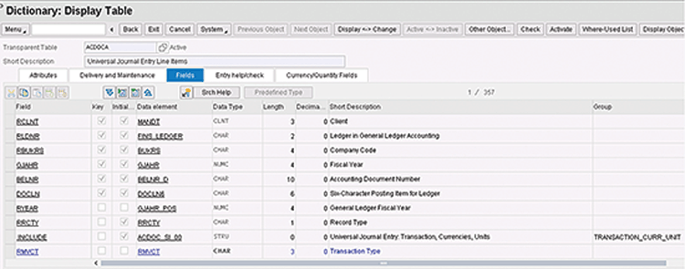 Fact 1: S/4HANA represents what can be called the power of one. To me, the introduction of the universal journal (table ACDOCA) moves SAP closer to a single accounting transaction repository. It means that the posting to various individual ledgers, such as the material ledger, Asset Accounting (FI-AA), and CO, has been replaced by posting to one unified journal. In operational terms, every business transaction in the SAP General Ledger or classic General Ledger, CO (except costing-based profitability analysis), FI-AA, and the price determination component of the material ledger generates a journal entry in table ACDOCA. Figure 1 displays a partial view of table ACDOCA.