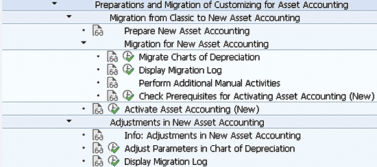 If you are migrating from classic FI-AA to the new FI-AA, you need to execute the migration activities that are relevant to your enterprise. I recommend that you read the documentation in the “Prepare for New Asset Accounting” step in the IMG as shown in Figure 7. The document lists in detail all the steps that are needed to be carried out prior to starting your migration into the new FI-AA. I also recommend that you carefully read the documentation for “Perform Additional Manual Activities.” Depending on your particular situation, some of these manual activities could be relevant to your enterprise.