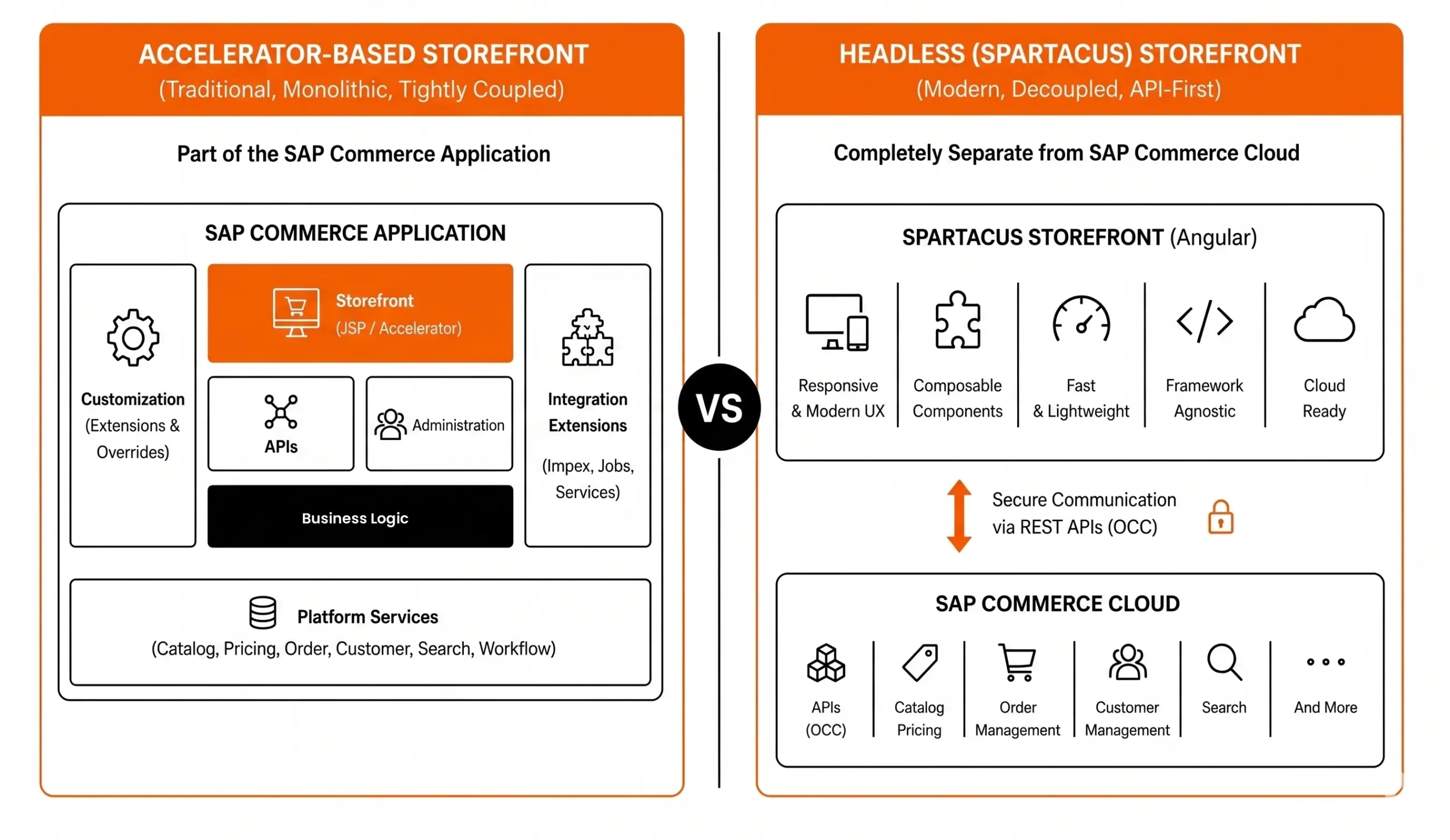 If you’re running a storefront on SAP Commerce Cloud (Accelerator), JSP-based storefronts are no longer the focus. The recommended direction is Spartacus, a modern, API-driven storefront built with Angular.