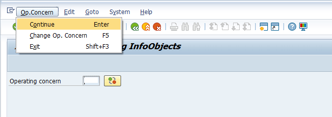 Select the Operating Concern check box in the pop-up screen. (This pop-up window appears only if you have not set your operating concern in the transaction code KEBC. If for any reason you would like to set a different operating concern than the one set in KEBC, then you click the display mode active/inactive icon