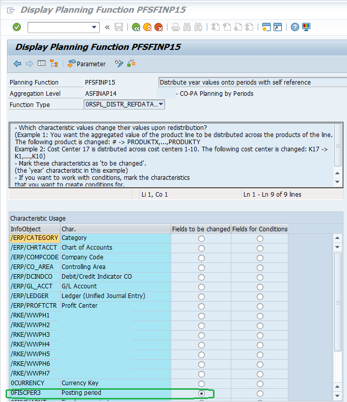 In the distribution function type you select the Posting period radio button only if you want the total planned key figures (amounts and quantities) to be distributed evenly across the periods upon execution of this planning function (