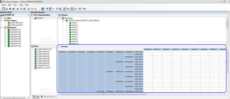Preview of rows and columns when you run the input-ready query for planning and reporting