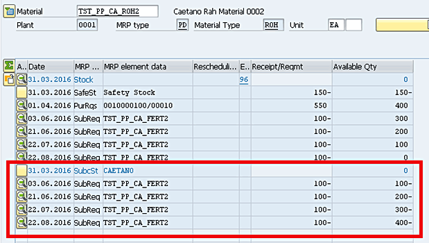 When you use MRP areas, however, there is a complete separation between the plant and the subcontracting MRP area. If you access the Stock/Requirements list informing the subcontracting MRP area as an input parameter (